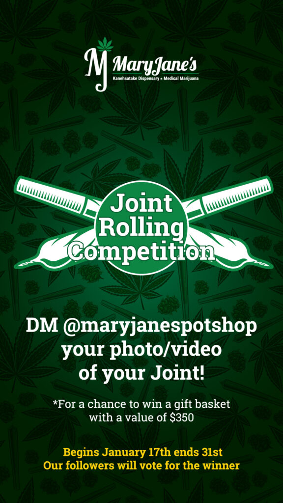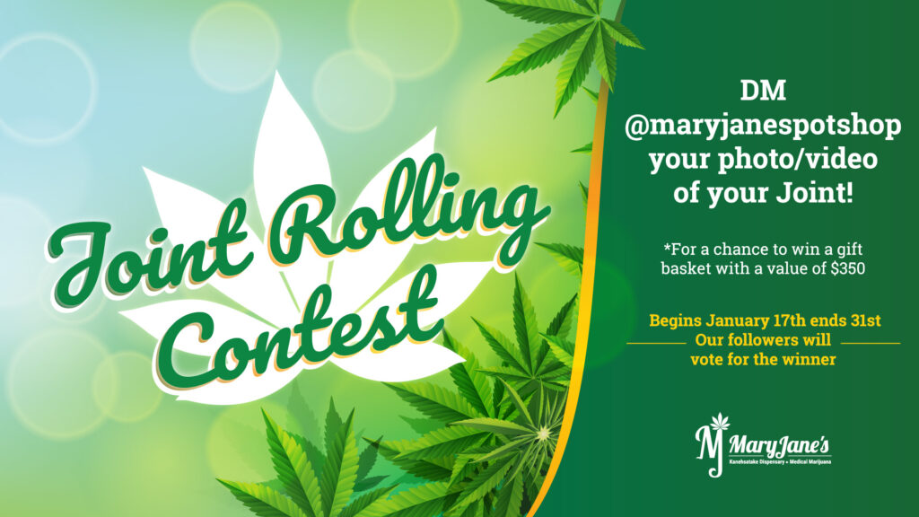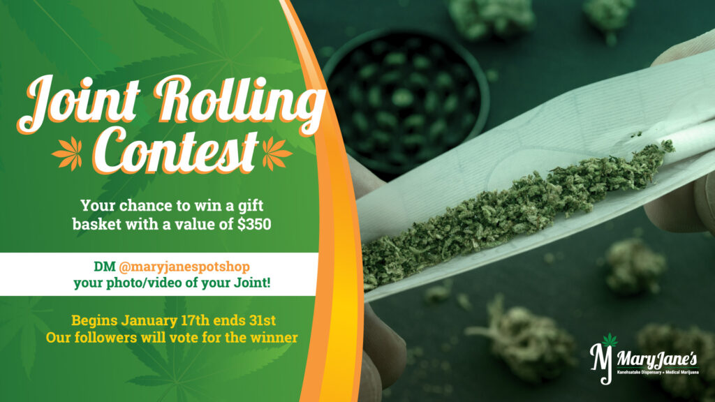 Joint Rolling Contest DM @maryjanespotshop your photo/video of your joint for a chance to win a gift basket with a value of $350! Begins January 17th, ends Jan 31st. Our followers will vote for the winner.